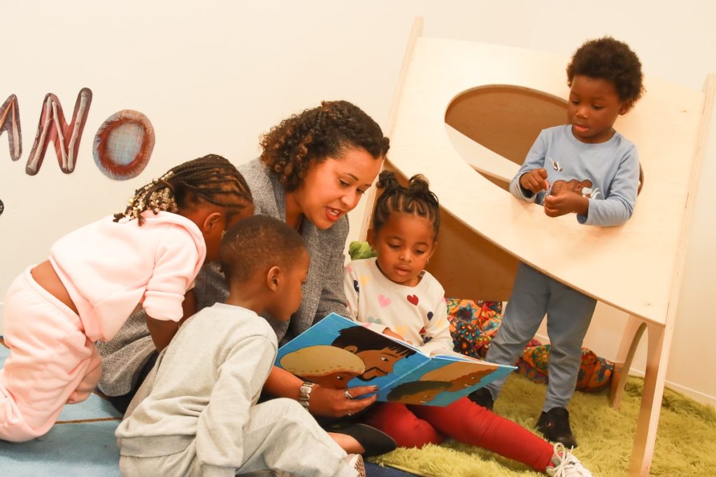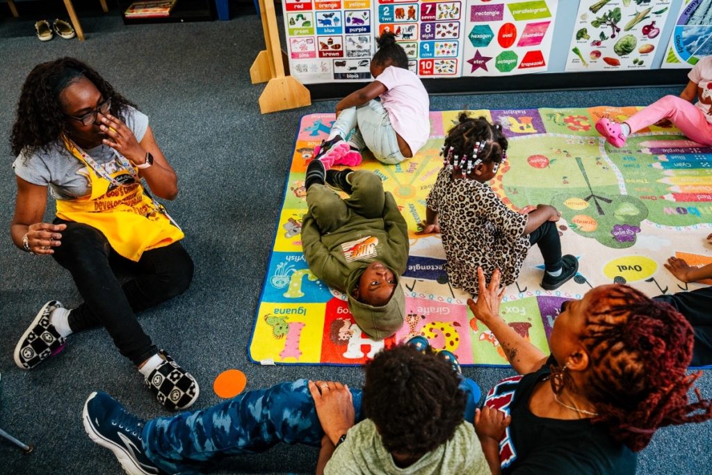 Pictured: Teacher and children at The Boston Square Early Childhood Center in Grand Rapids.